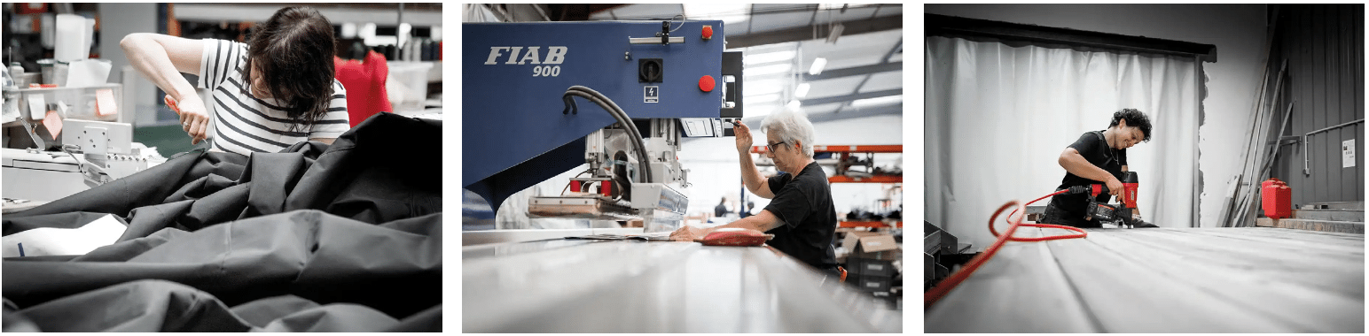 Terrasse Directe ne “fabrique” pas les toiles : nous en assurons la confection, un travail minutieux réalisé par des professionnels du textile technique.